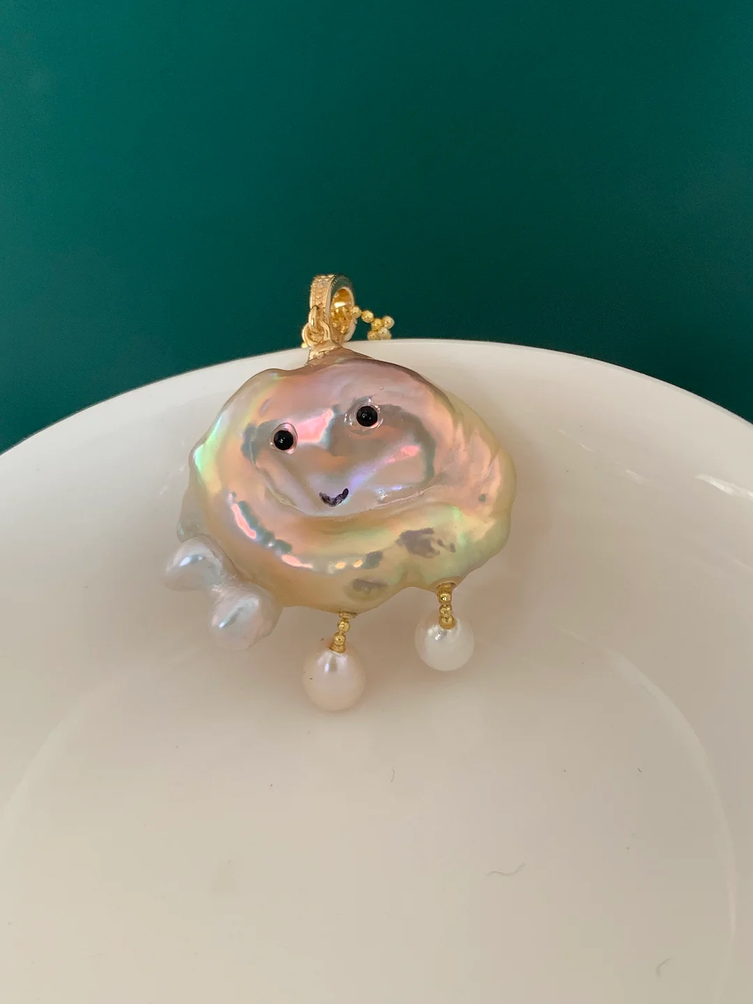 TINA PEARL is wearing a cloud pearl necklace with a bow ( just 1 )