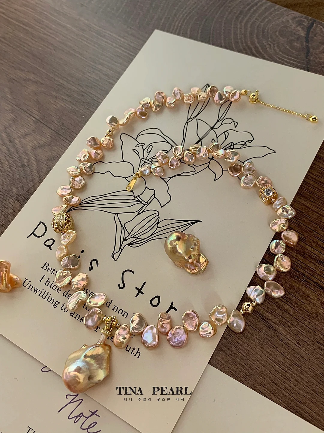 TINA Jewelry, Colorful Baroque pearl + Petal necklace combination Creative necklace