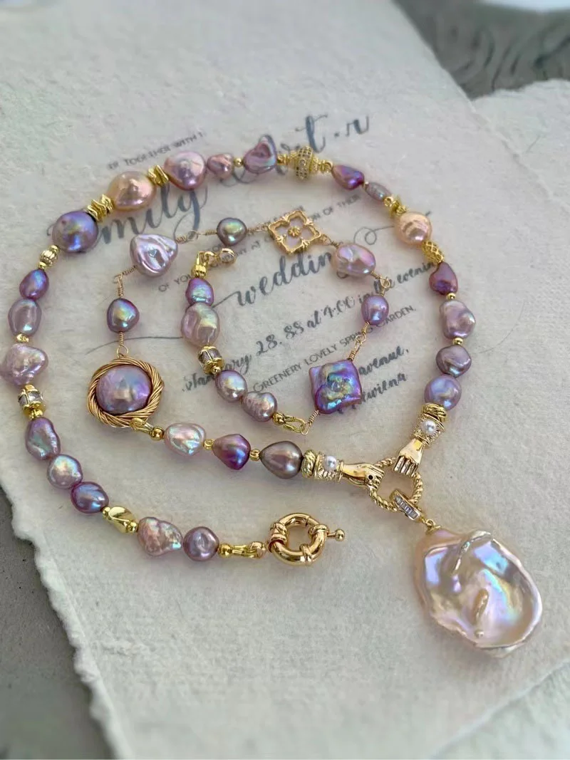 TINA PEARL Colorful Pearl rainbow Design Necklace, purely handmade, unique Baroque style