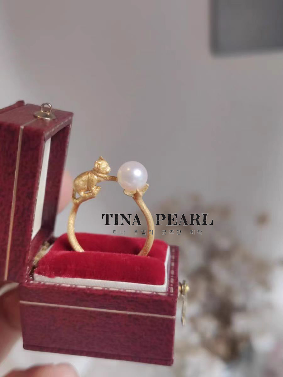 2024 TINA Jewelry 18k gold Sea Water akoya cat cute ring