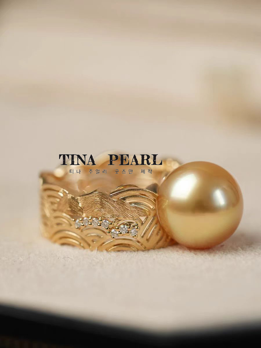 2024 TINA Jewelry 18k gold sea water round gold pearl mountain sea diamond ring