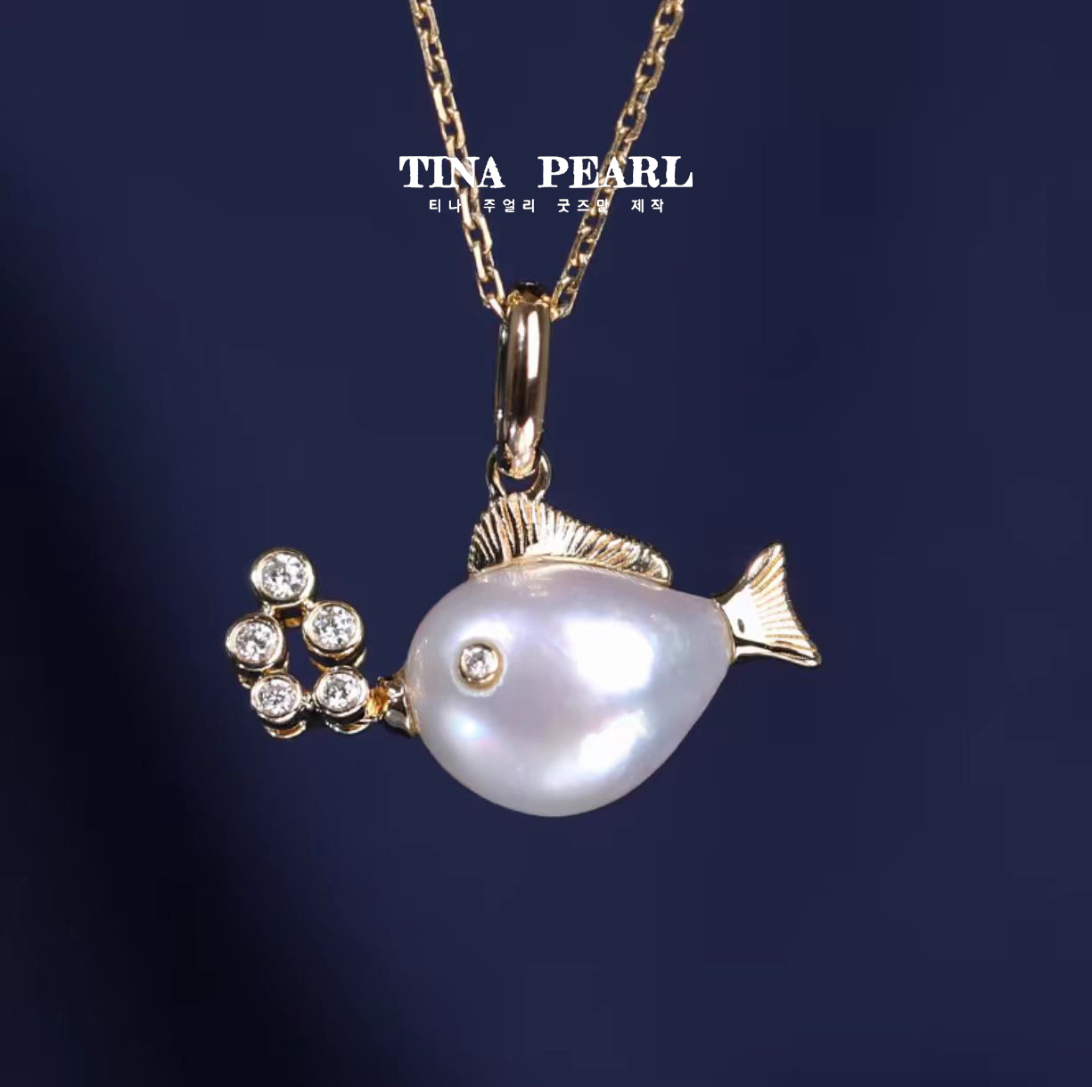 2024 TINA Jewelry 18k gold seawater keshi shaped fish pendant