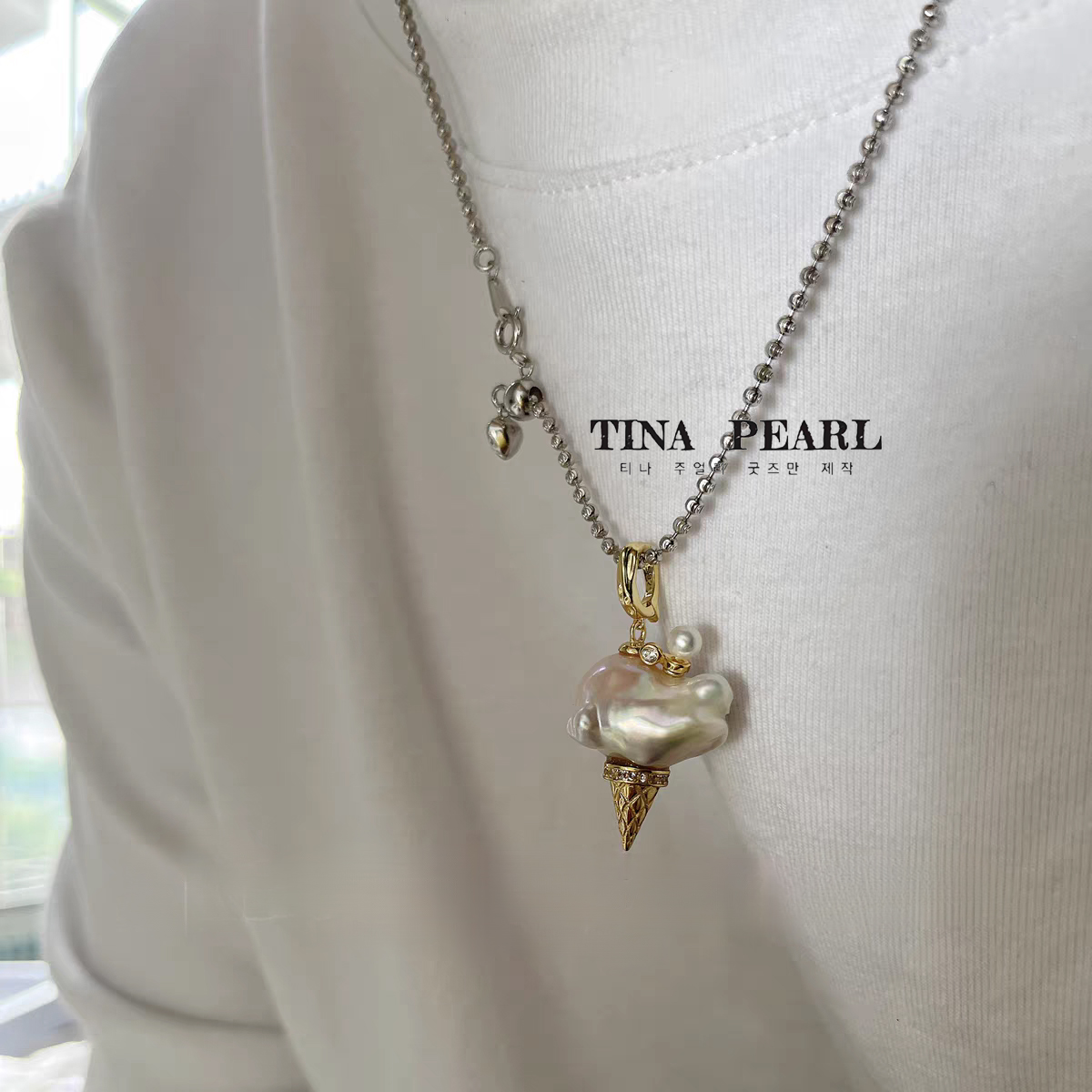 2024 TINA Jewelry 925 silver freshwater Pearl Baroque ice cream necklace