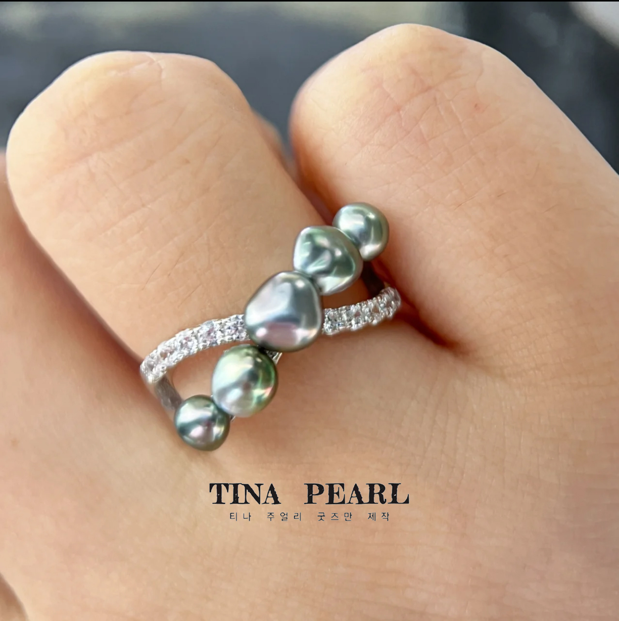 2024 TINA Jewelry 925 Silver set seawater Tahiti keshi exquisite ring