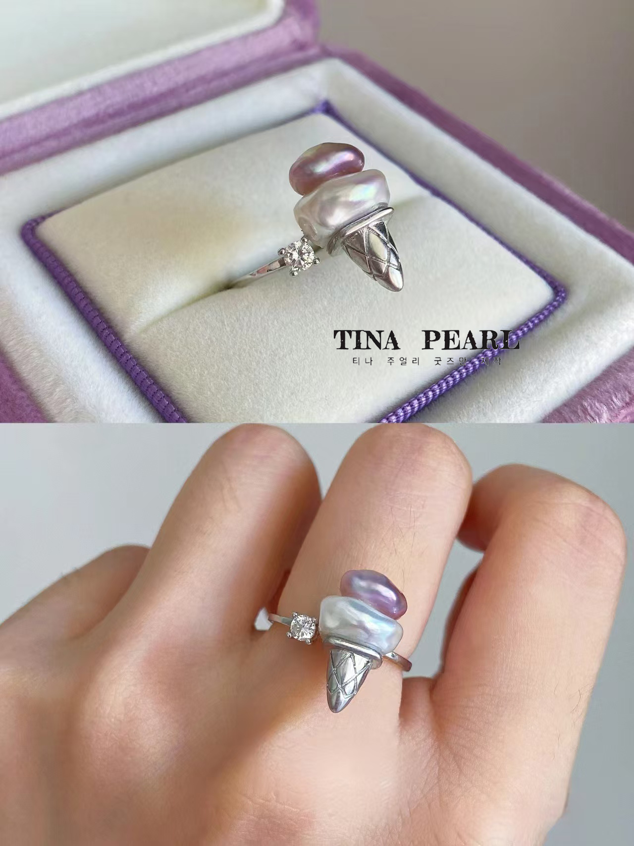 2024 TINA Jewelry Freshwater Pearl 925 silver ice cream ring