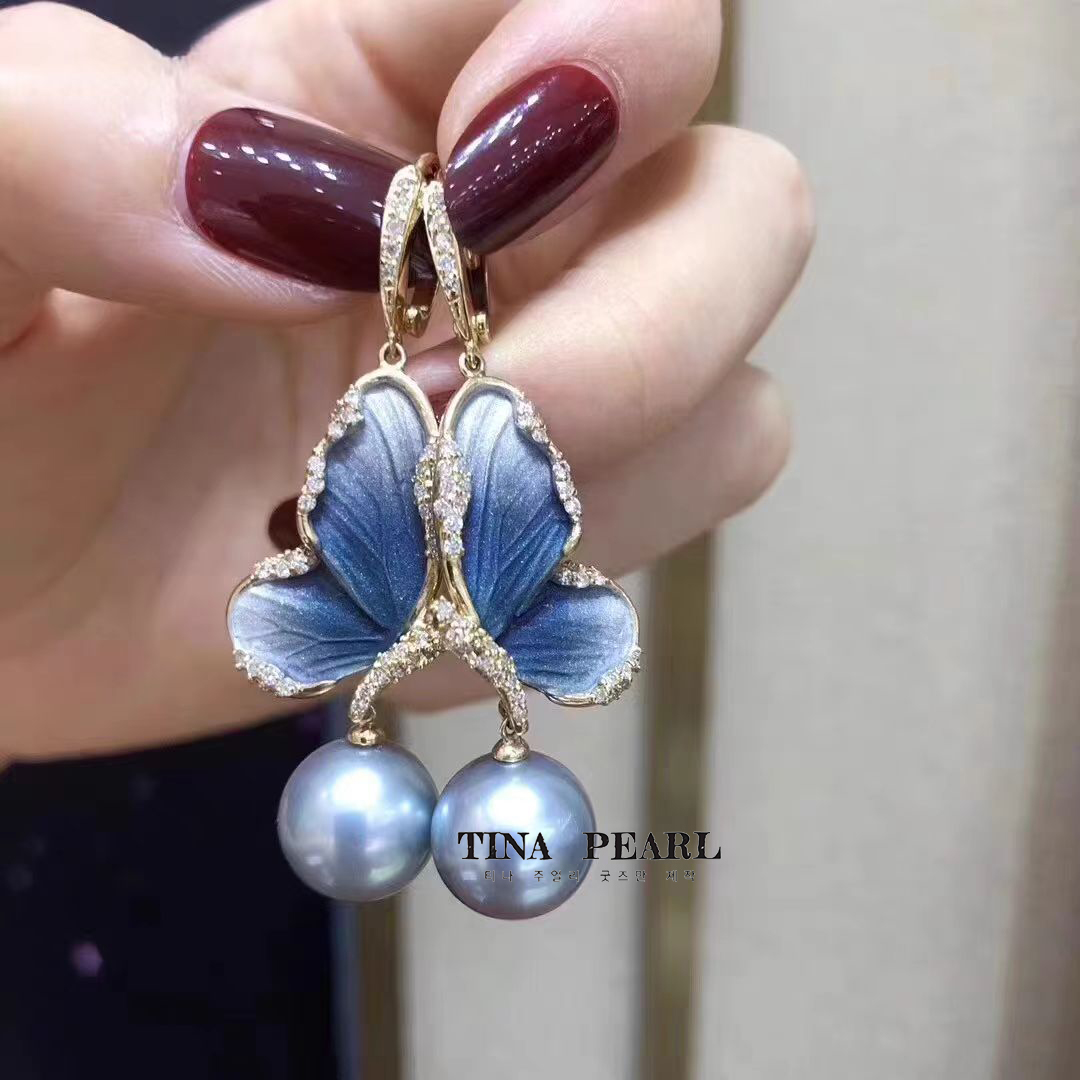 2024 TINA Jewelry Seawater Tahiti Pearl +18k+ Diamond butterfly earrings