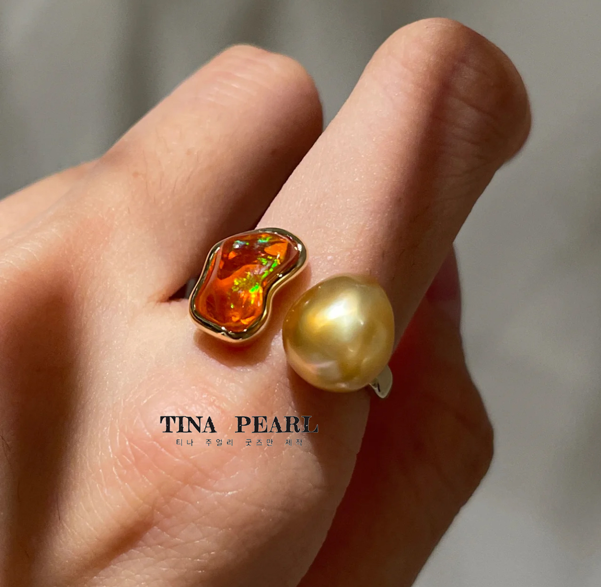 2024 TINA Jewelry18k gold + Opal gems + sea gold beads design premium ring