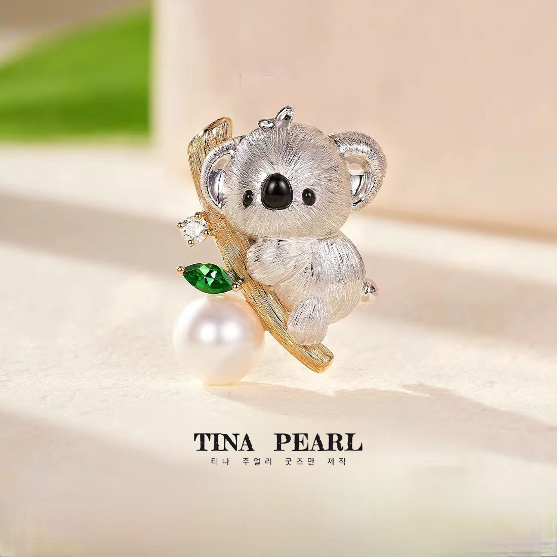 2024 TINA Jewelry18k gold Sea water akoya+ Jewel Koala brooch Pendant for dual use