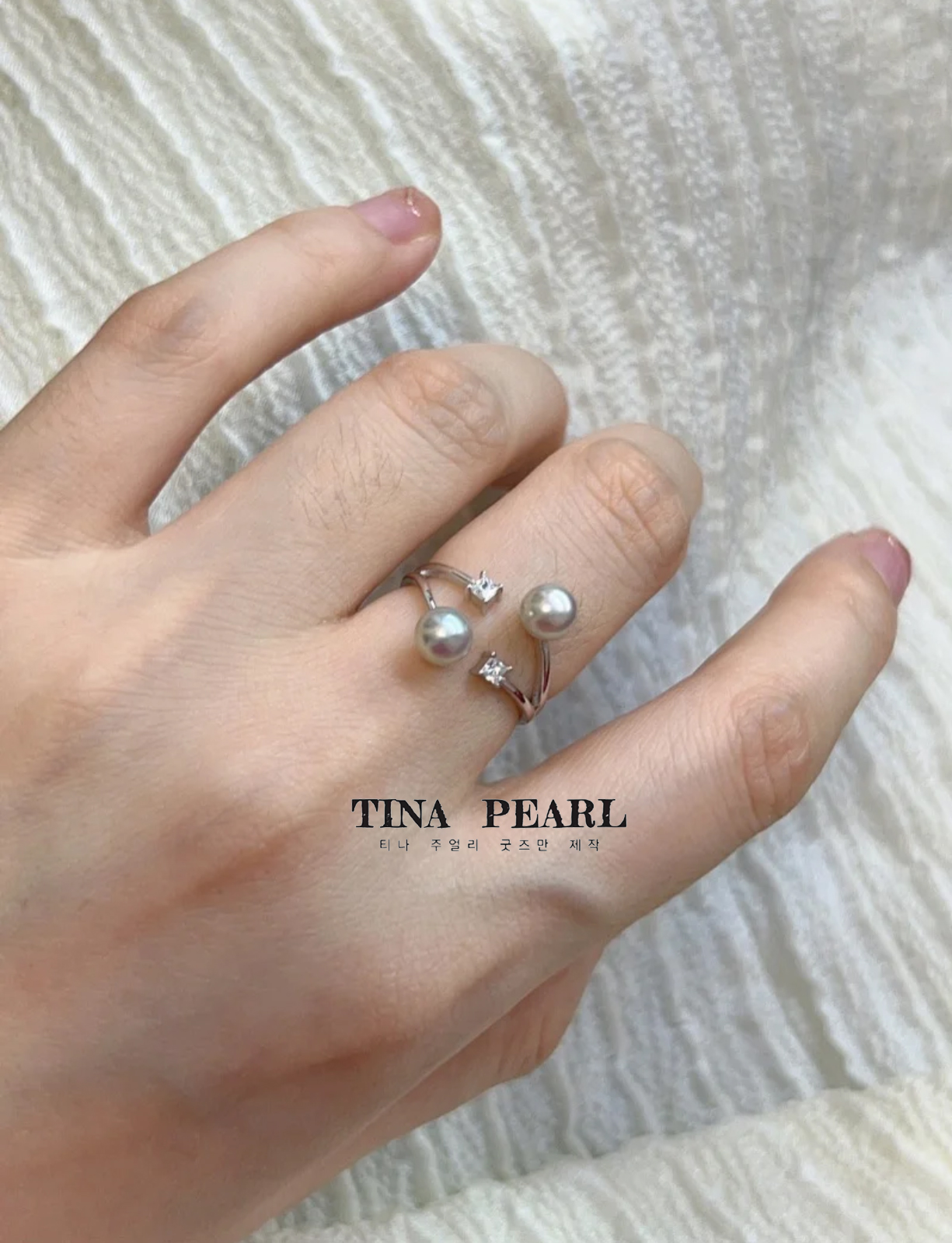 2024 TINA Jewelry18k gold Sea Water akoya simple double pearl diamond ring
