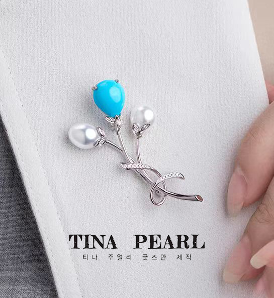 2024 TINA Jewelry18k gold Turquoise + Baroque Sea Pearl Bouquet Brooch