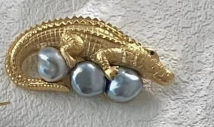 2024 tina pearls custom 18 k gold pretty crocodile with pearls brooch