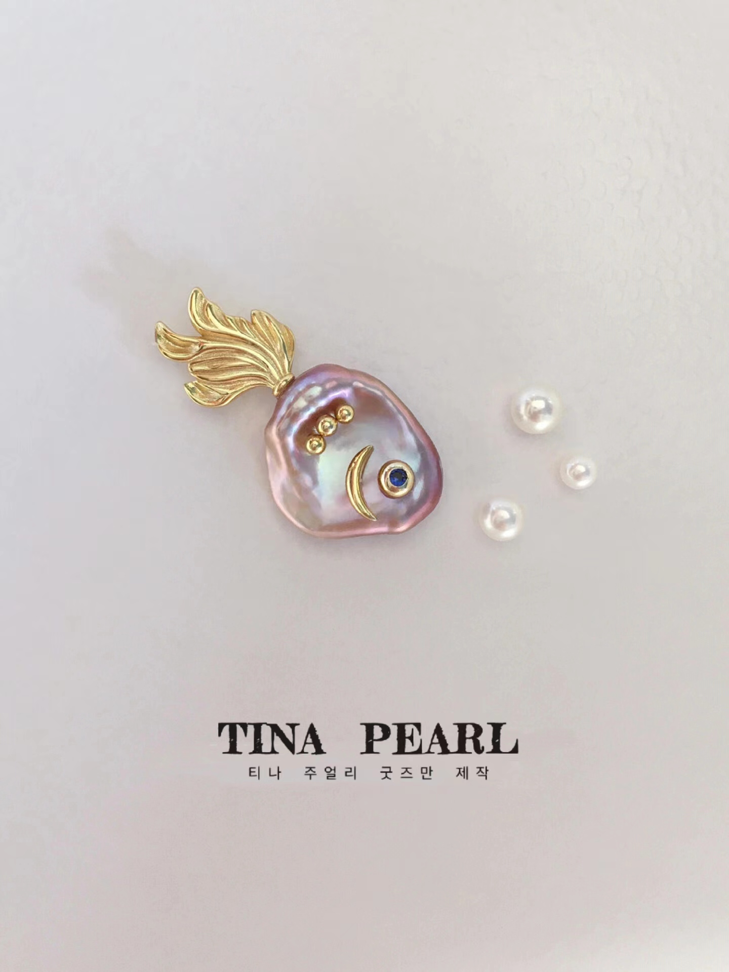 2024 tina pearls custom real pearls cute nice sea fish pendant with sliver gold plated, necklace length about 45cm