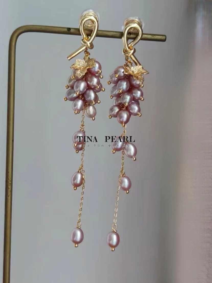 2024 tina pearls Fresh water pearl 925 silver tassel grape earrings