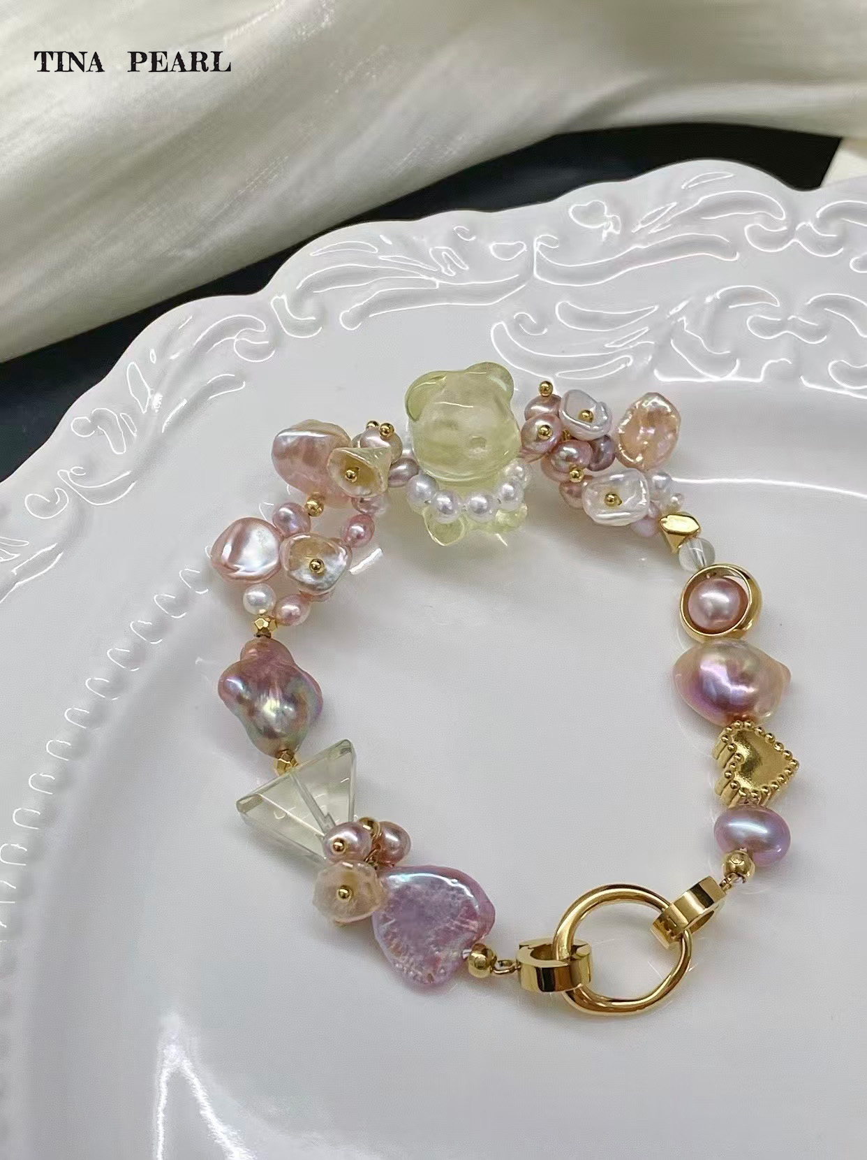 2026 TINA Jewelry Freshwater pearl baroque + crystal combination design bracelet