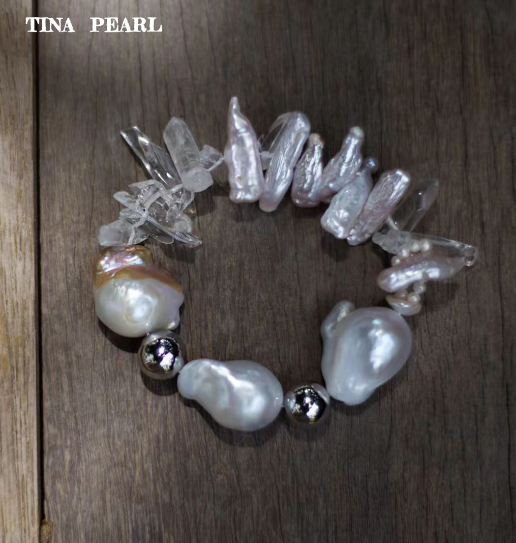 2026 TINA Jewelry Freshwater pearl baroque + crystal special style bracelet