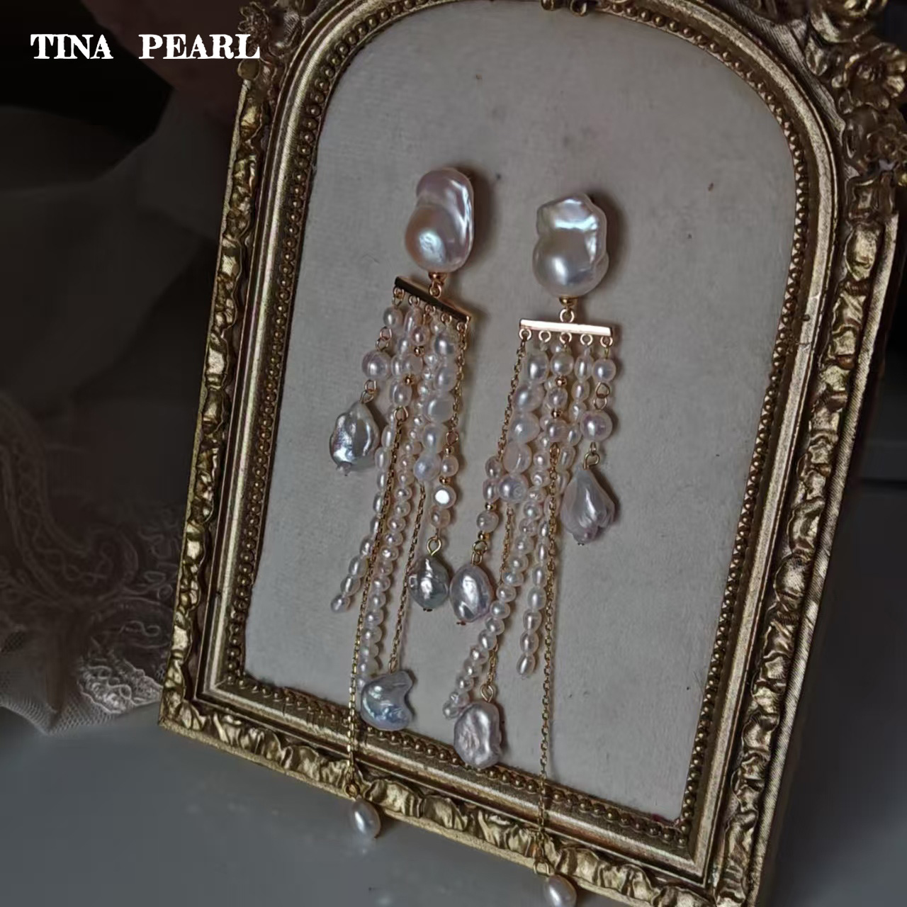 2026 TINA Jewelry Freshwater pearl baroque tassel Rococo earrings