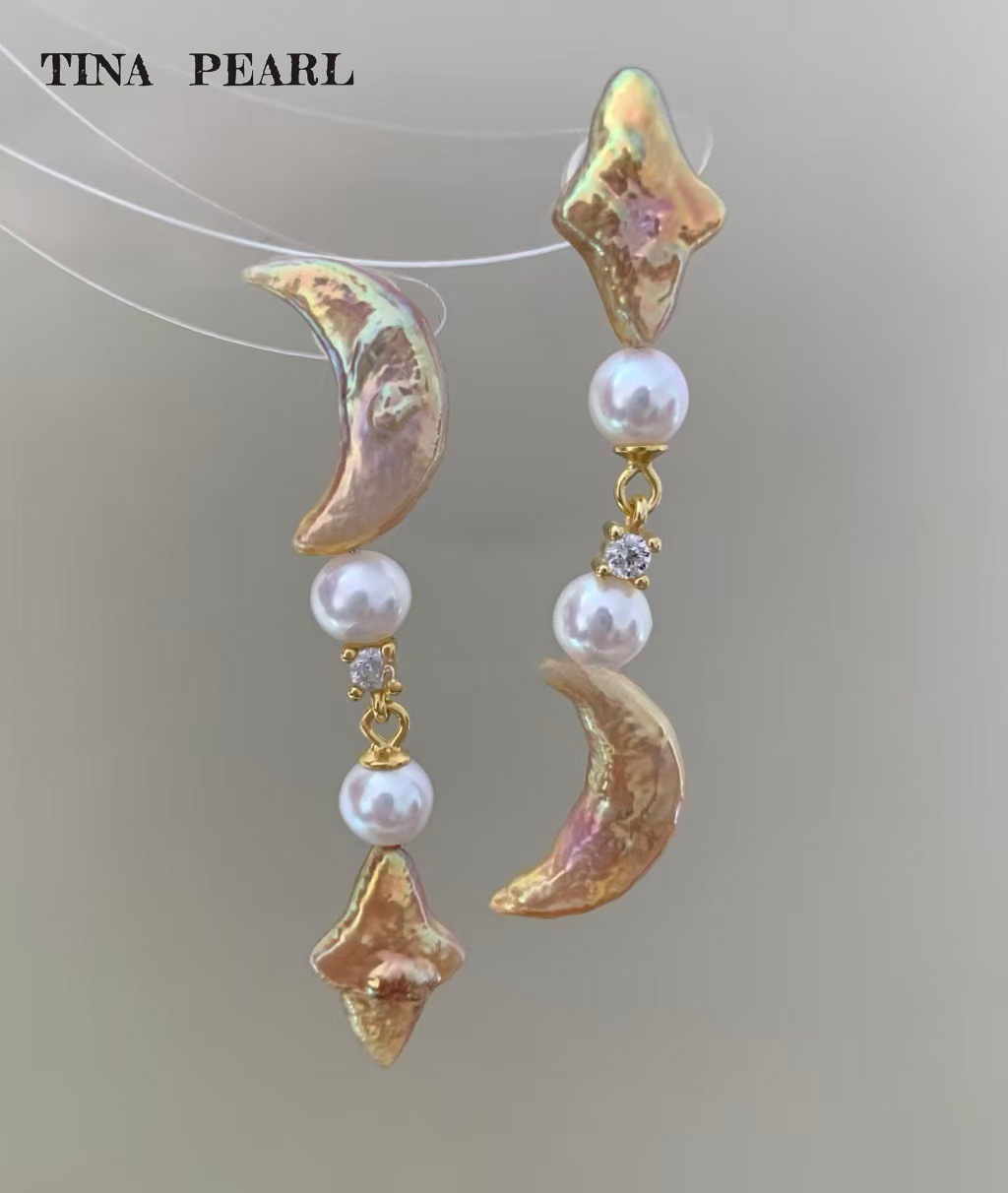 2026 TINA Jewelry Freshwater Pearl Star and Moon Design Earrings