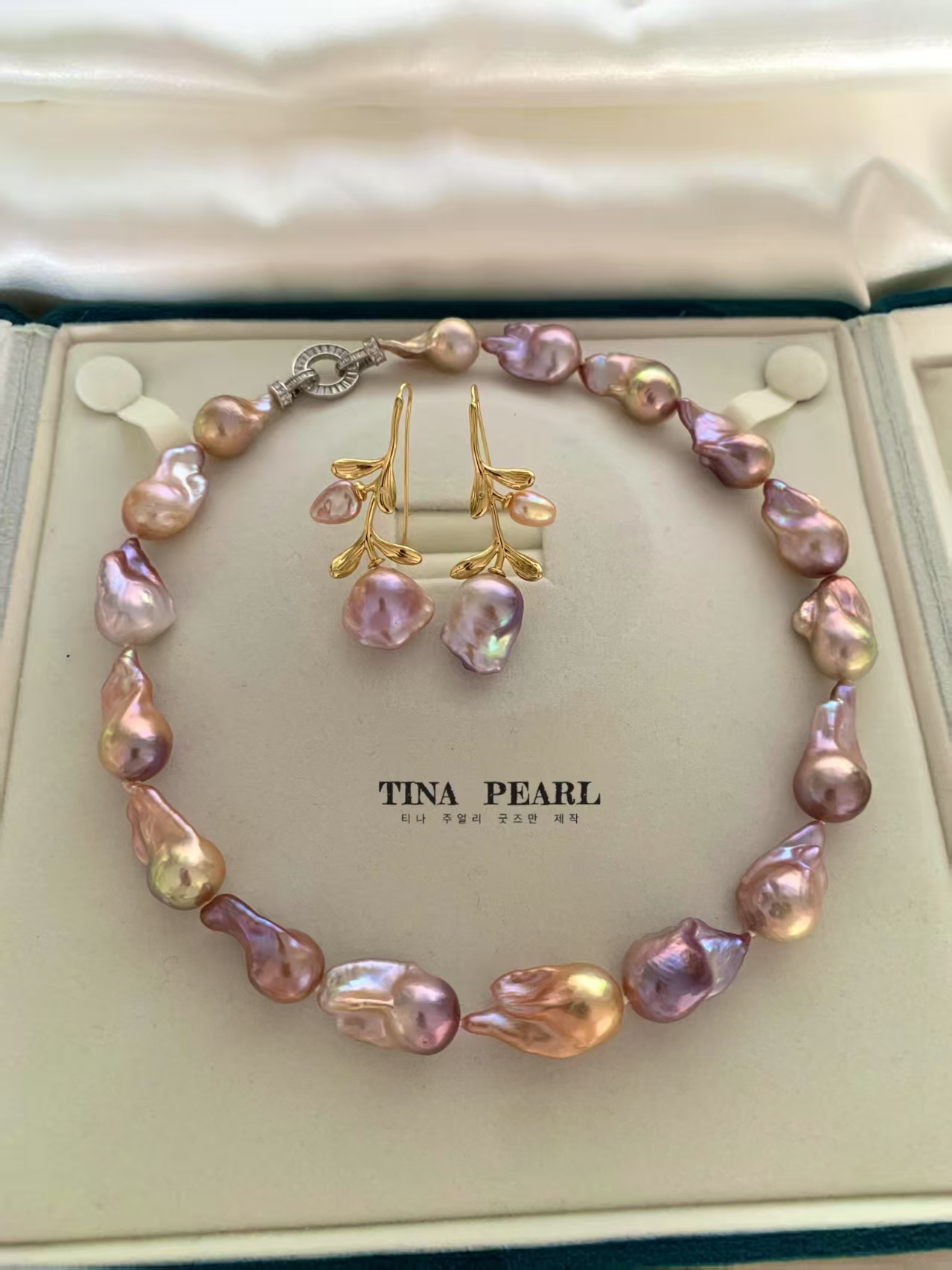 Colorful baroque pearl necklace and earrings S925 free shipping