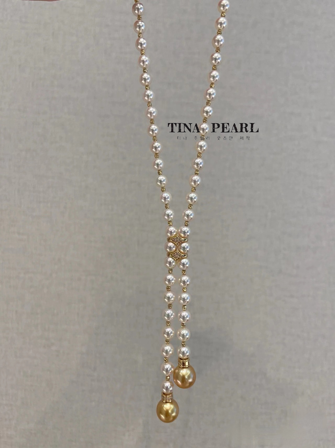 TINA Jewelry 18k+akoya Pearl + South Sea gold Zhuhai Water jewelry necklace