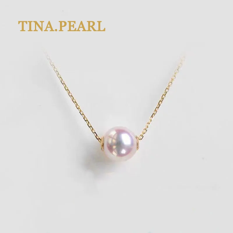 TINA Jewelry 18K gold AKOYA Sea Pearl Perfect round Aurora Classic style chain in 18K gold