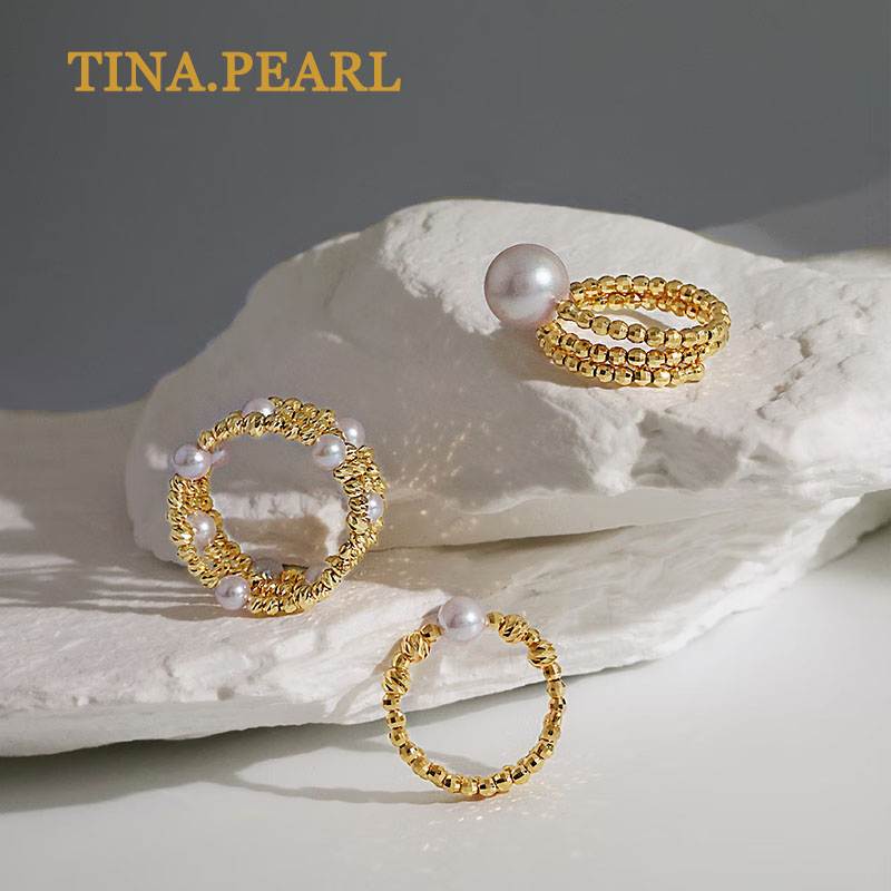 TINA jewelry 18K gold Akoya seawater pearl niche design pearl ring 5-5.5mm