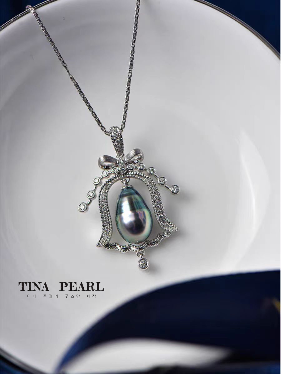 TINA Jewelry 18k gold + Diamond Sea Tahiti bell necklace