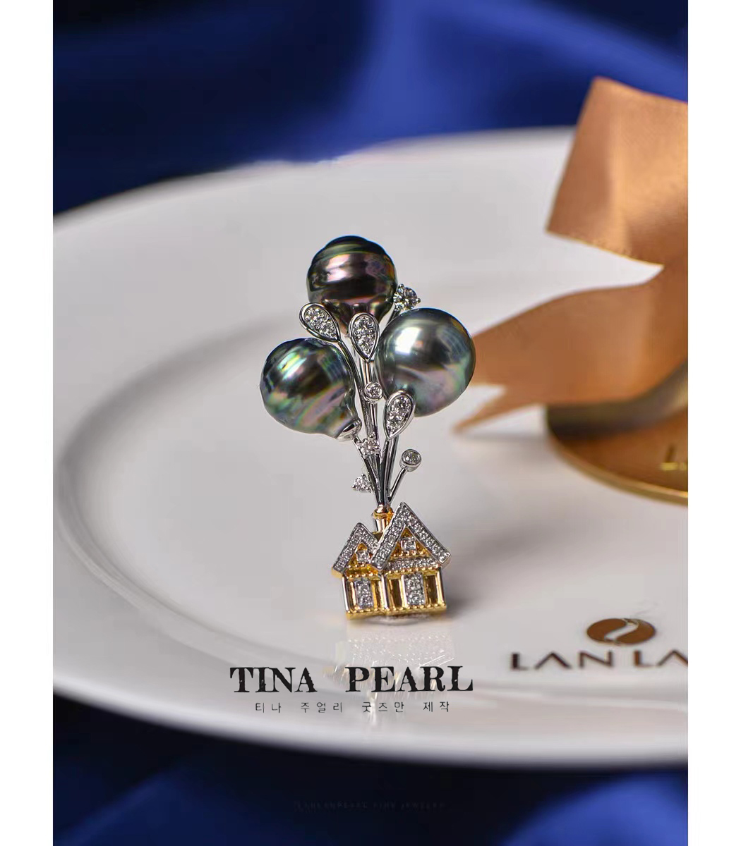 18k gold + Diamond + Tahiti Pearl Flying House Brooch, the inspiration for Flying House, takes you on an adventure. Brooch 18k weight is about 6.4g, diamond is about 0.53CT, pearl size is about 9-11mm.