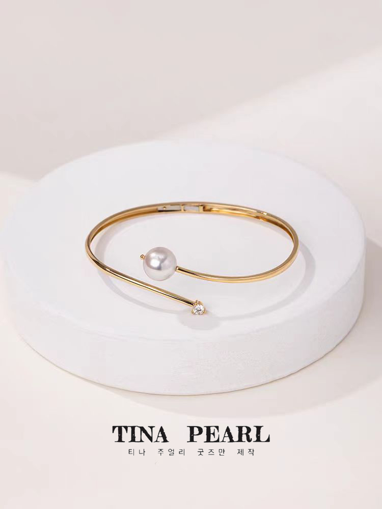 TINA Jewelry 18k Gold Sea Water akoya+ Diamond French simple bracelet