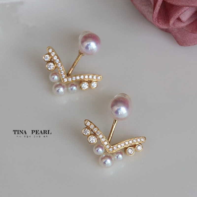 TINA Jewelry 18K gold Sea water Akoya pearl earrings, removable in a variety of ways Custom 18K gold/white gold. Zircon/diamond