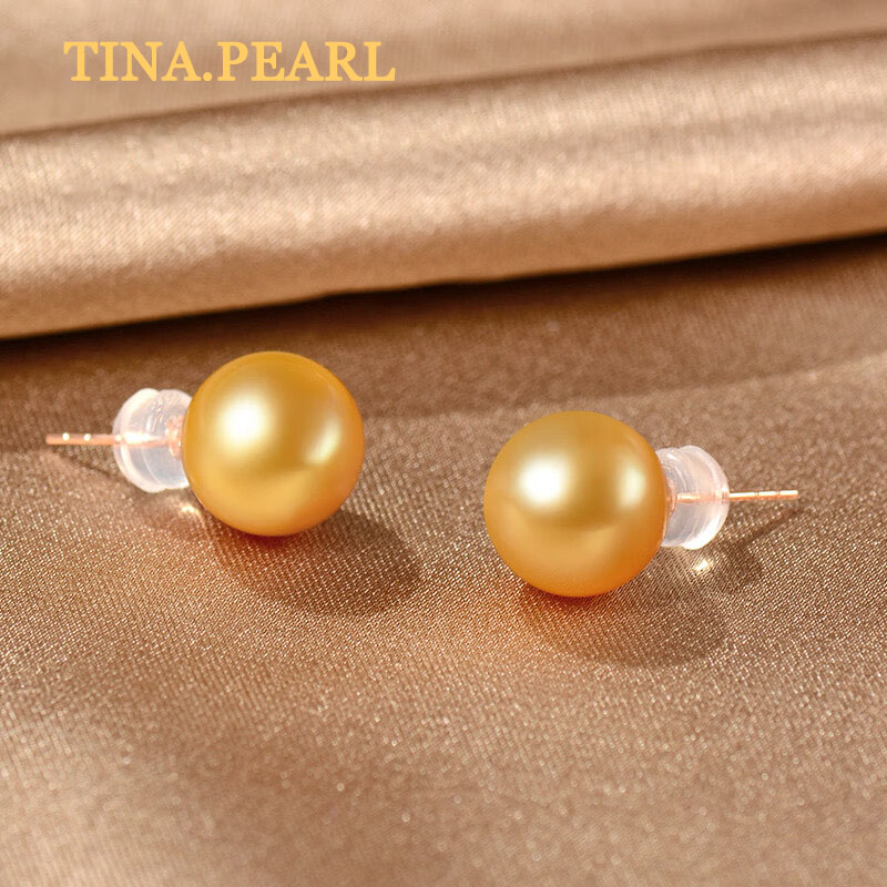TINA Jewelry 18K Gold South Sea Pearl Stud Earrings Pearl 9-10mm