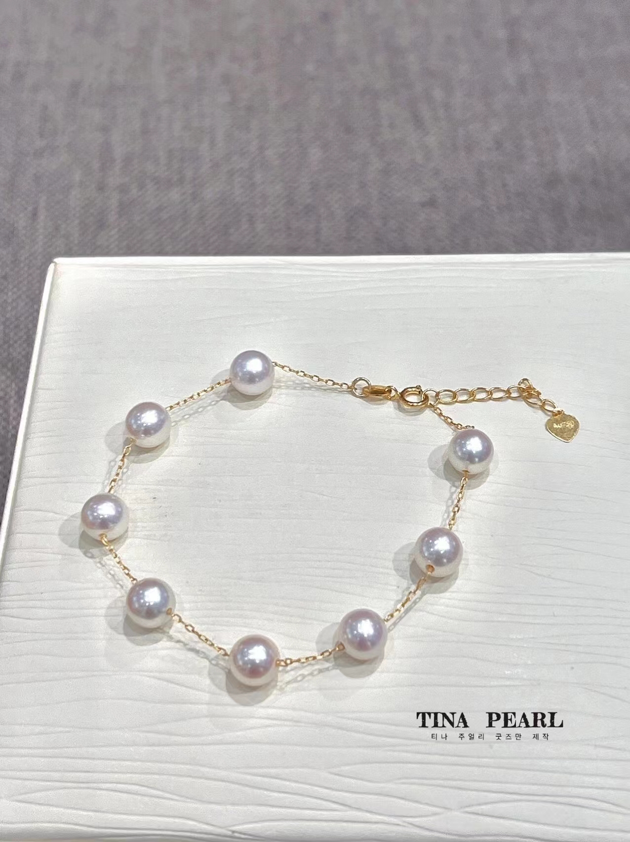 TINA Jewelry 18K gold with sea water Akoya pearl bracelet The pearl size is about 6-6.5mm