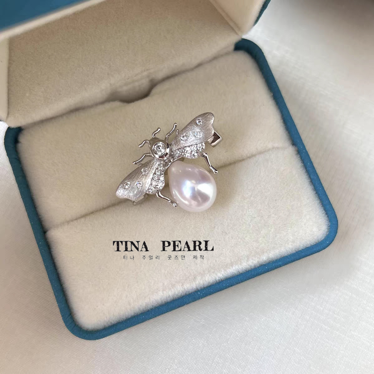 TINA Jewelry 925 Silver Bee design freshwater pearl brooch