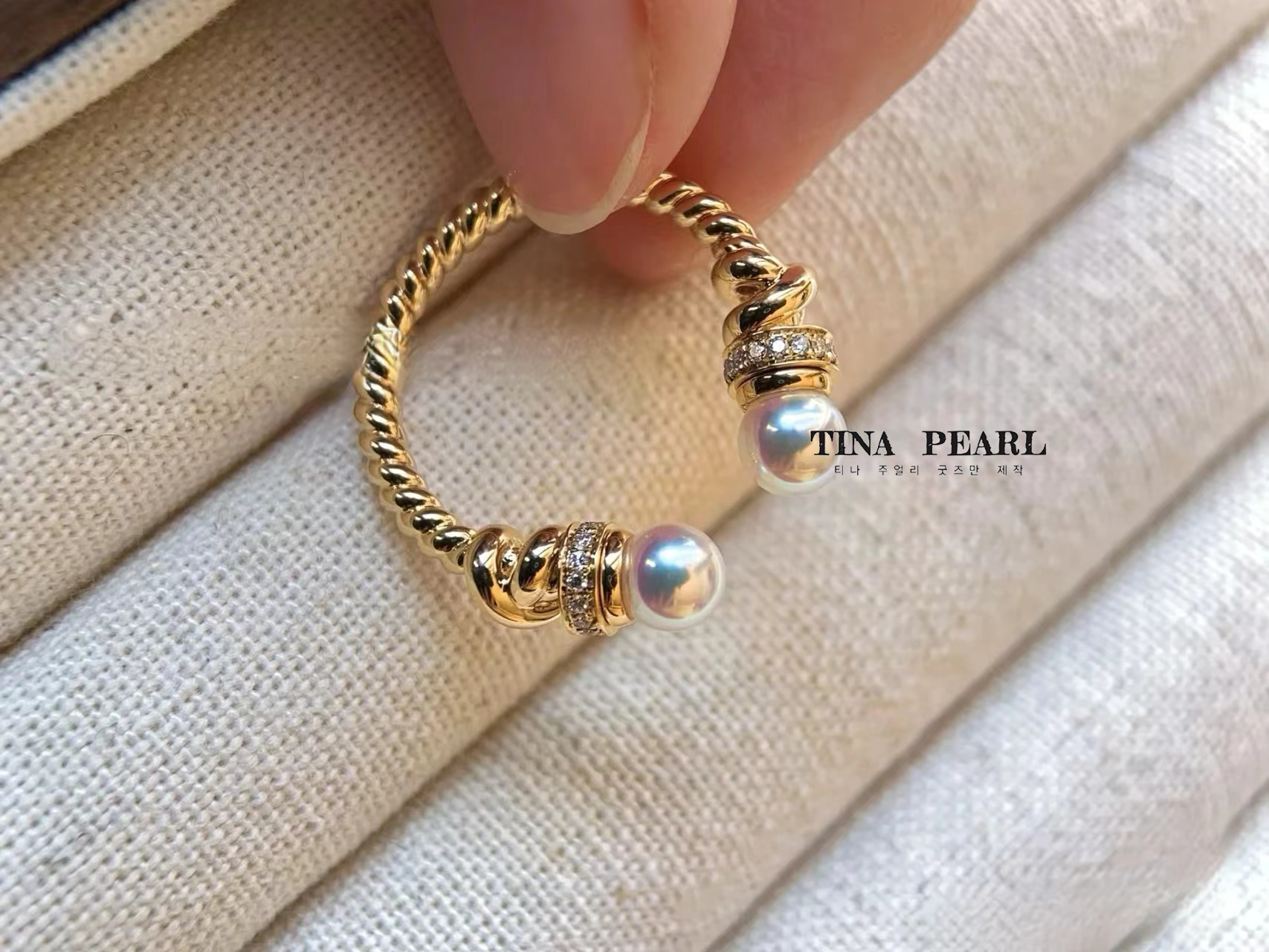 A selection of high quality round beads akoya, solid ring, diamond and 18k combination. Noble and elegant.