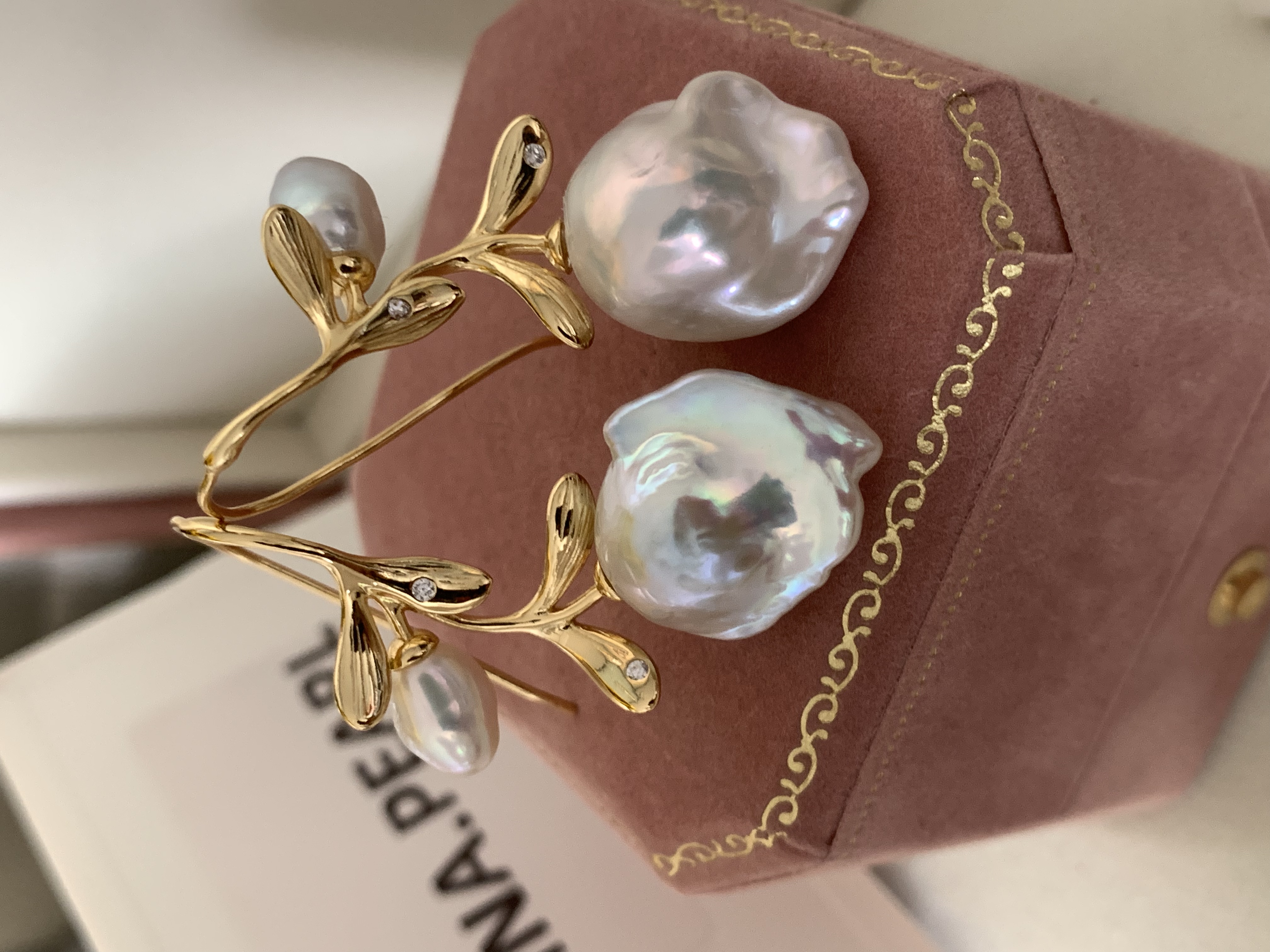 TINA Jewelry Fresh water pearl Baroque earrings in rose design