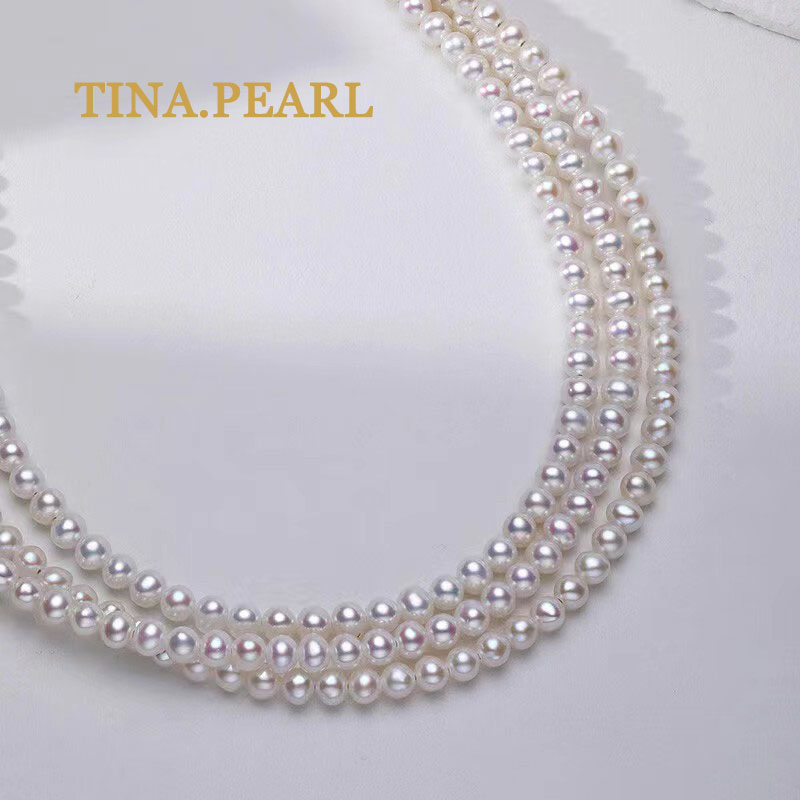TINA Jewelry Fresh Water Pearl Multi-layer wear S925 Silver Fresh Water Pearl Size 3.5-4mm Pearl shape almost round pearl Extremely glossy elegant style pearl necklace