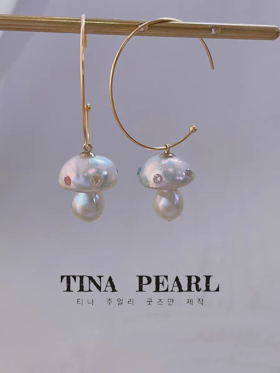 TINA Jewelry freshwater pearl mushroom earrings, cute and playful. The accessory material is S925 silver,