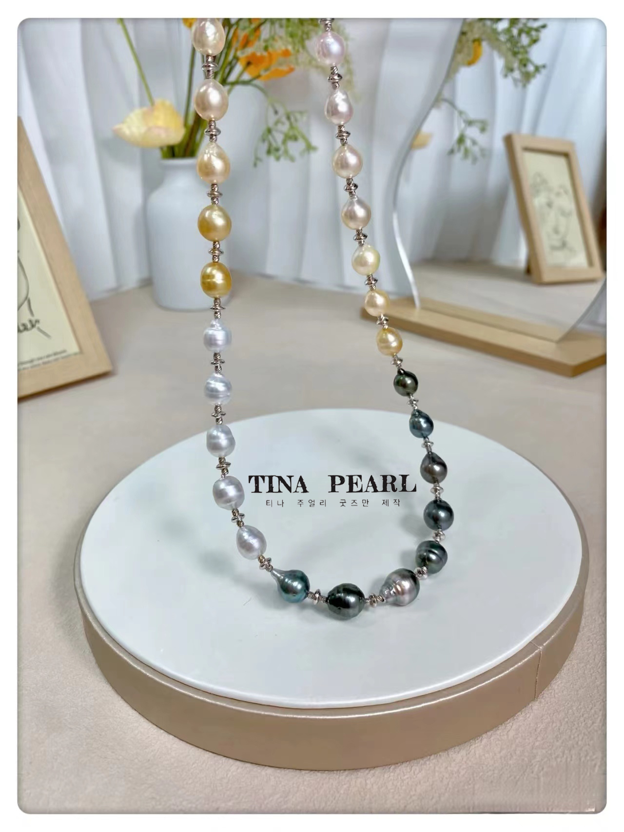 TINA Jewelry Gradient color South Sea Gold Beads +akoya+ Tahiti multicolor Pearl necklace