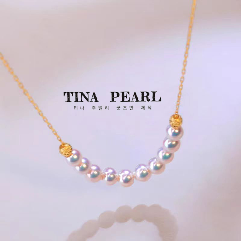 TINA Jewelry Japanese natural akoya Sea Pearl necklace pendant 18k gold extremely strong light smile road road collarbone chain
