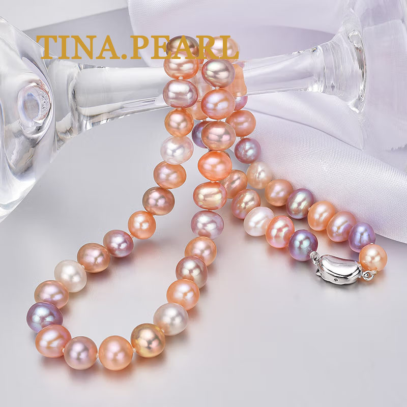 TINA Jewelry Mixed Color Freshwater Pearl Close to Round Pearl Necklace S925 Silver Buckle Fashion Versatile Style