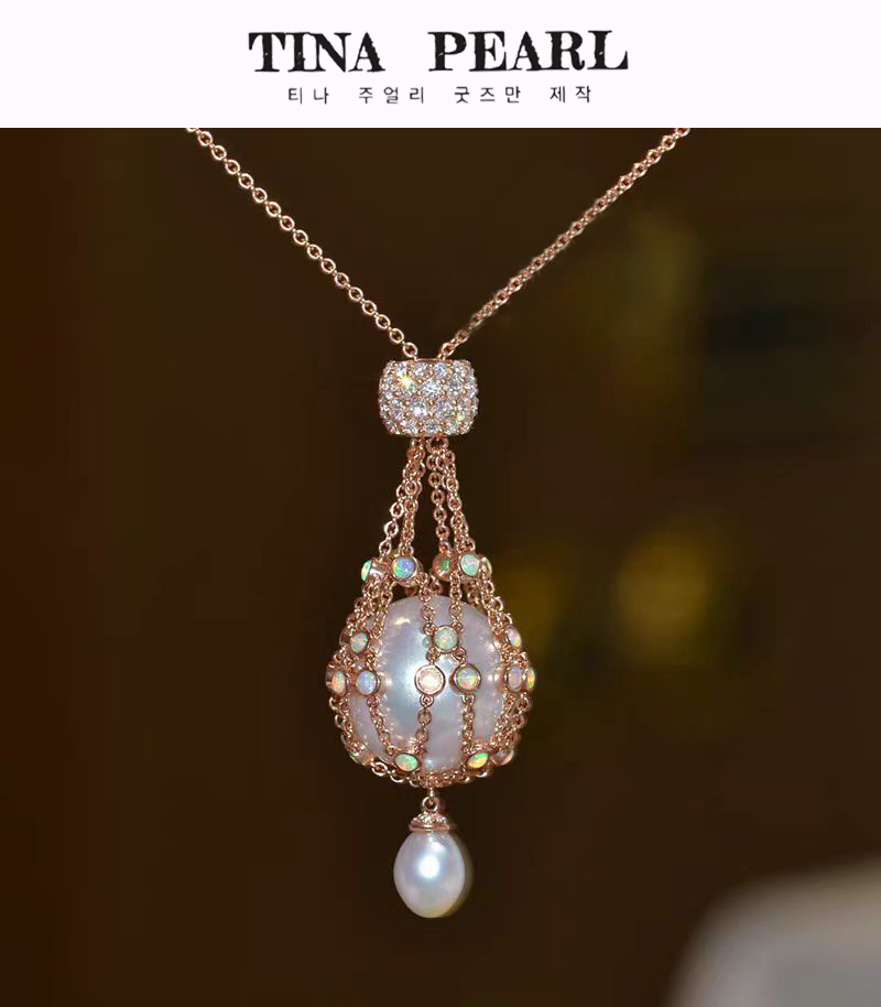 TINA Jewelry Net necklace Opal Au White Pearl Pendant 18K gold diamond long necklace (excluding Au white single beads)
