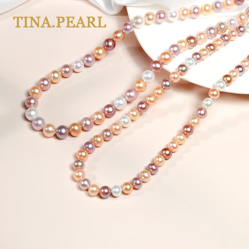 TINA jewelry pearl necklace freshwater pearl round necklace pearl 8.5-9.5mm total length 43mm freshwater pearl bracelet 7.5-8.5mm total length 17.5-18mm