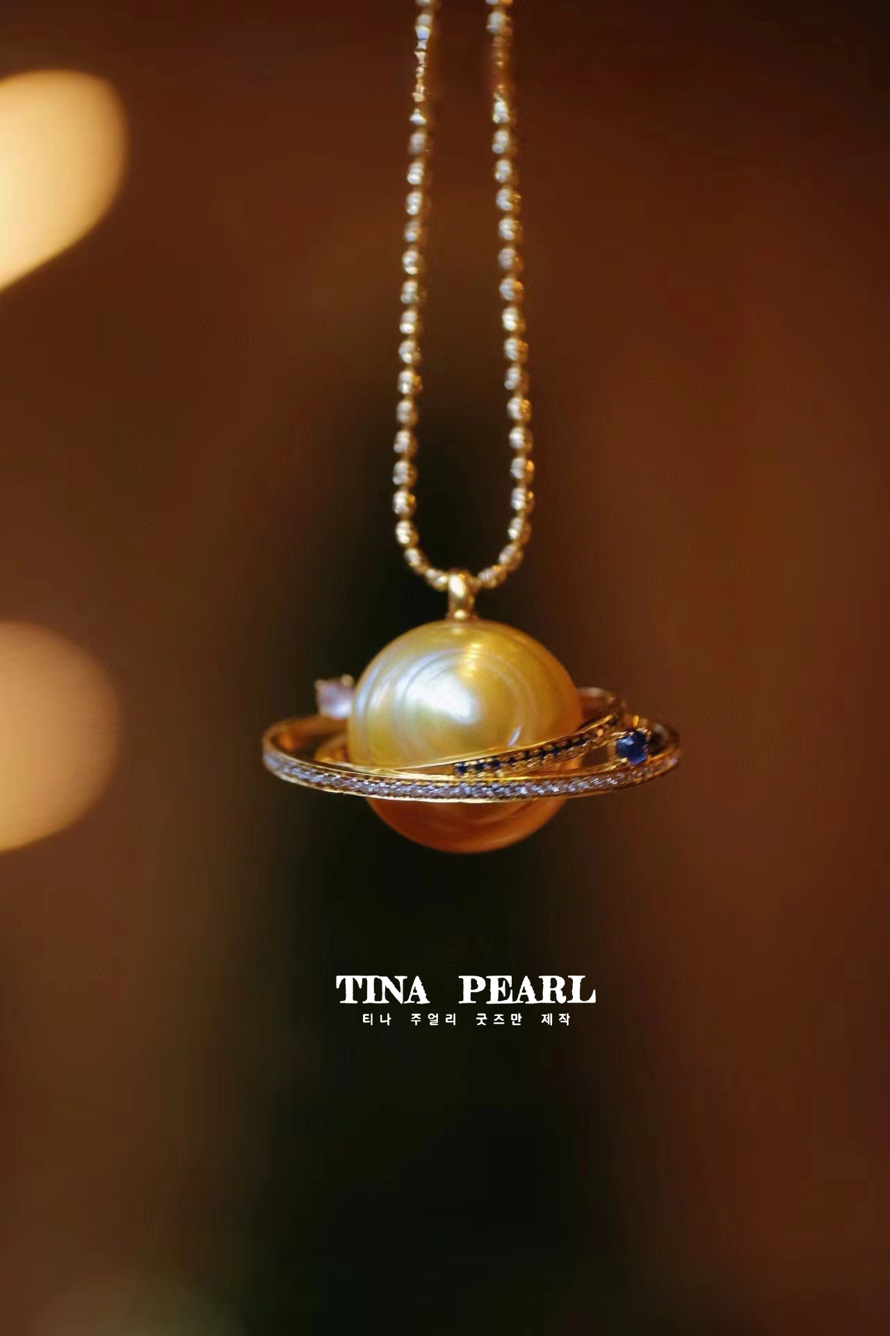 The universe pearl can be made of gold beads or Aussie or Tahiti thread beads, sapphire and diamond advanced inlaid, the romance of the universe around your neck, the price includes k gold chain.