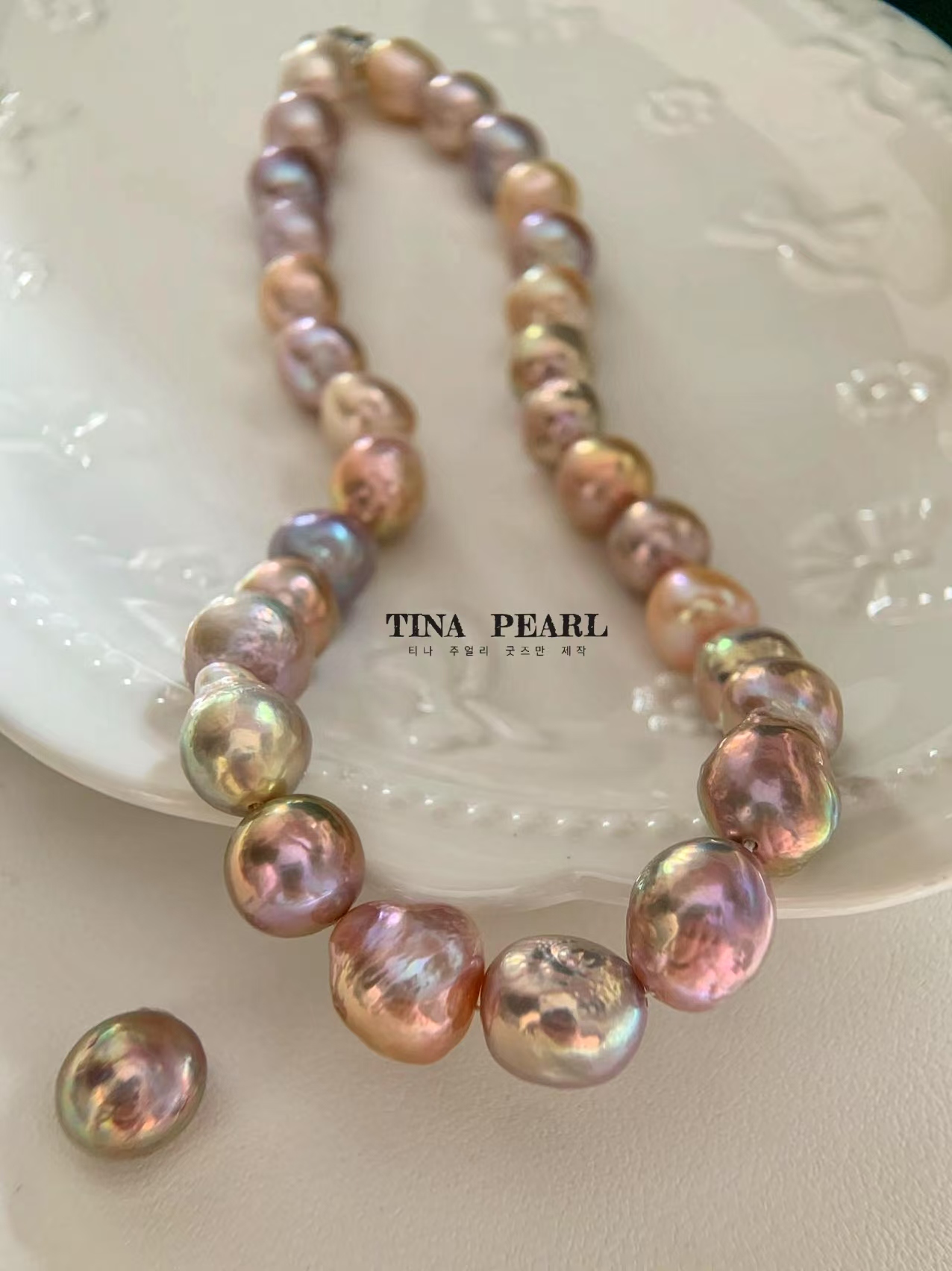 TINA PEARL Aurora, colorful freshwater pearl necklace s925 50cm length