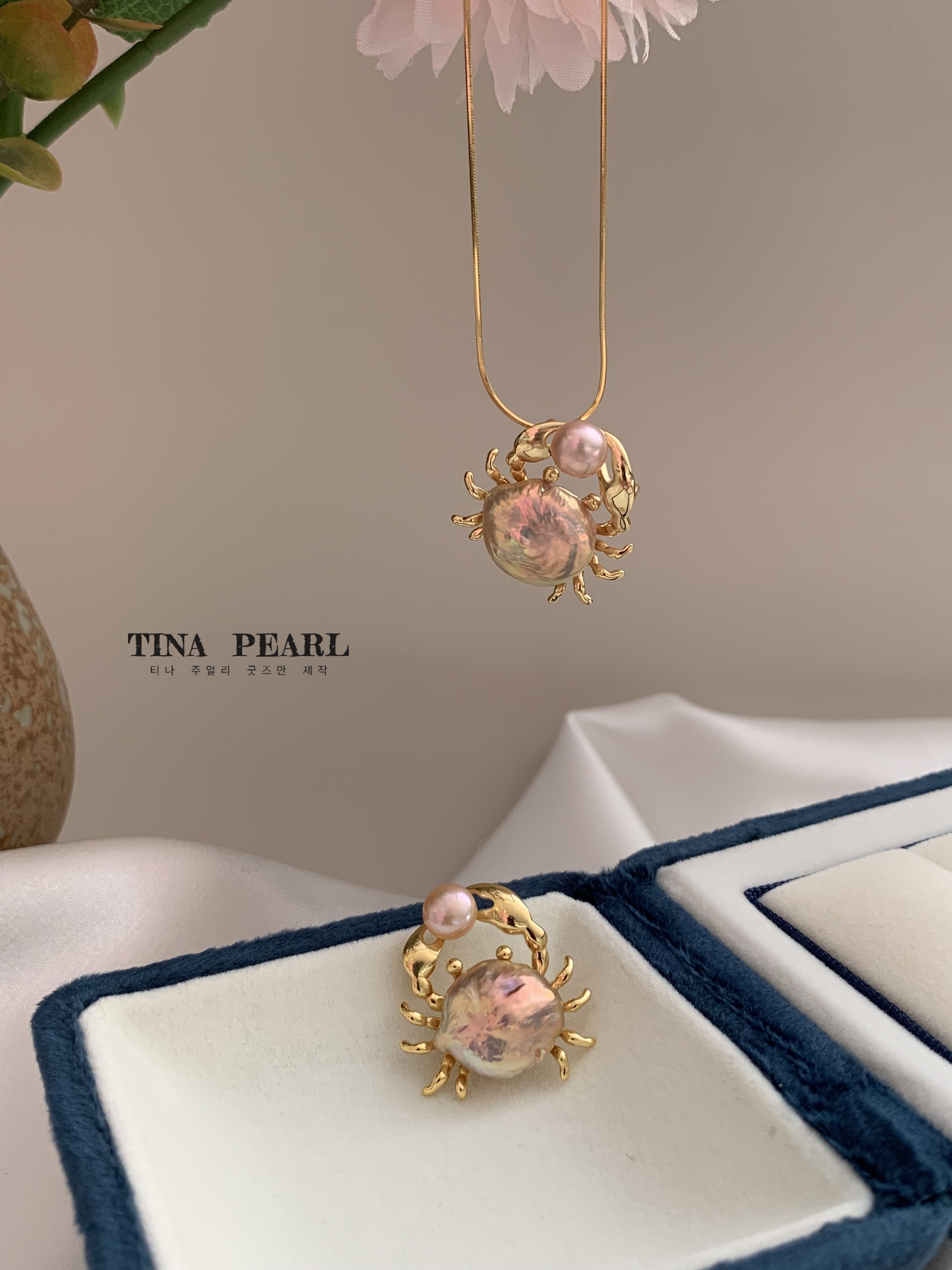 TINA PEARL Colorful crab natural pearl pendant S925