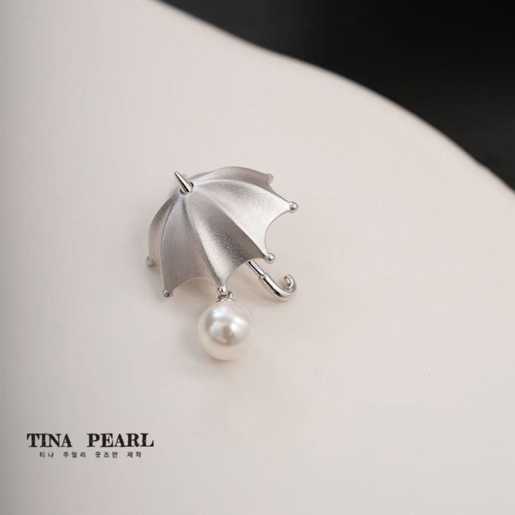 TINA PEARL Creative Design Pure Silver Small Umbrella Pearl brooch