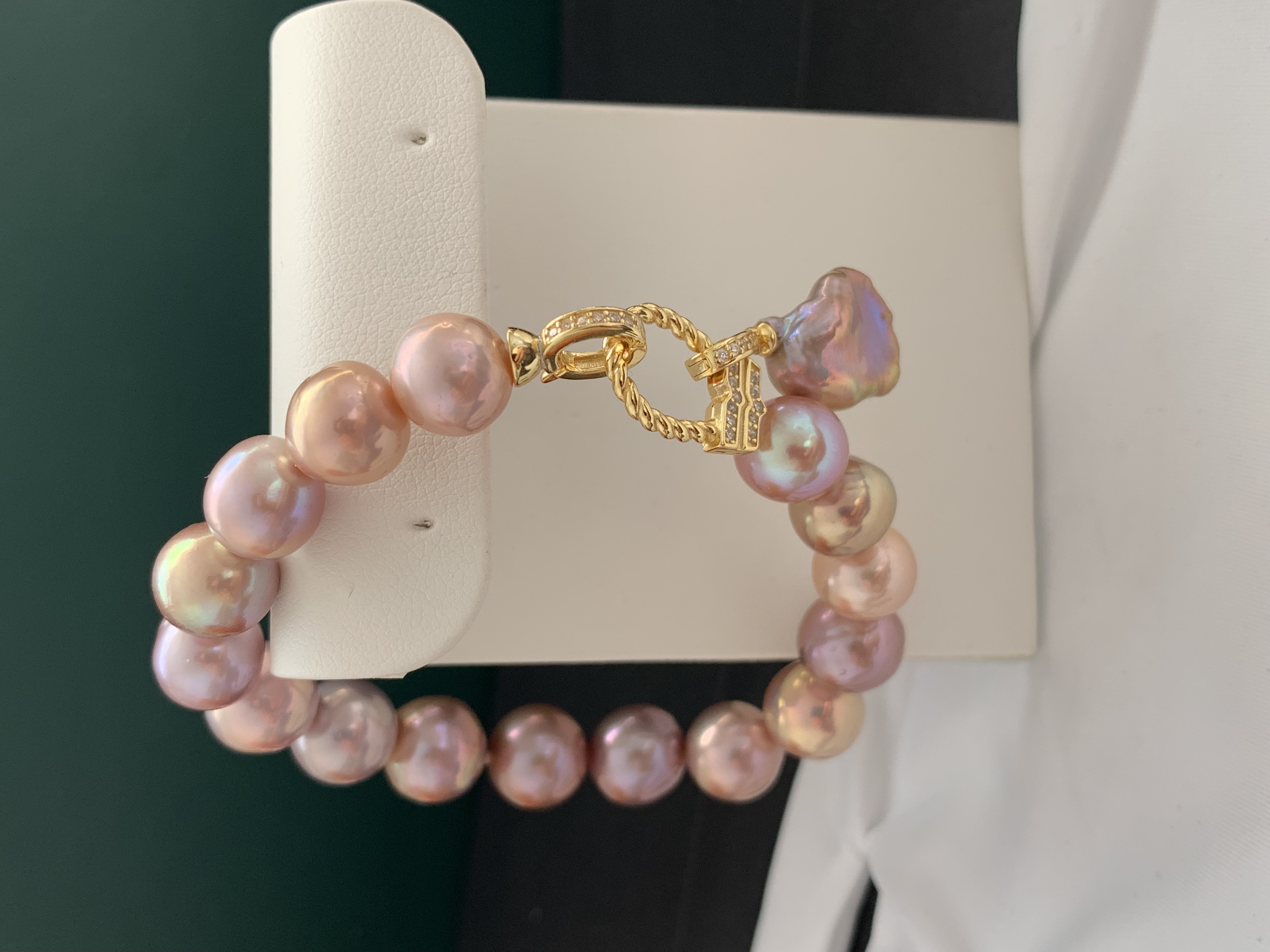 Pearl size: 9.2 - 10.8 mm . Chain size: 18.5cm . Material: Freshwater pearls / S925 silver (gold plated)