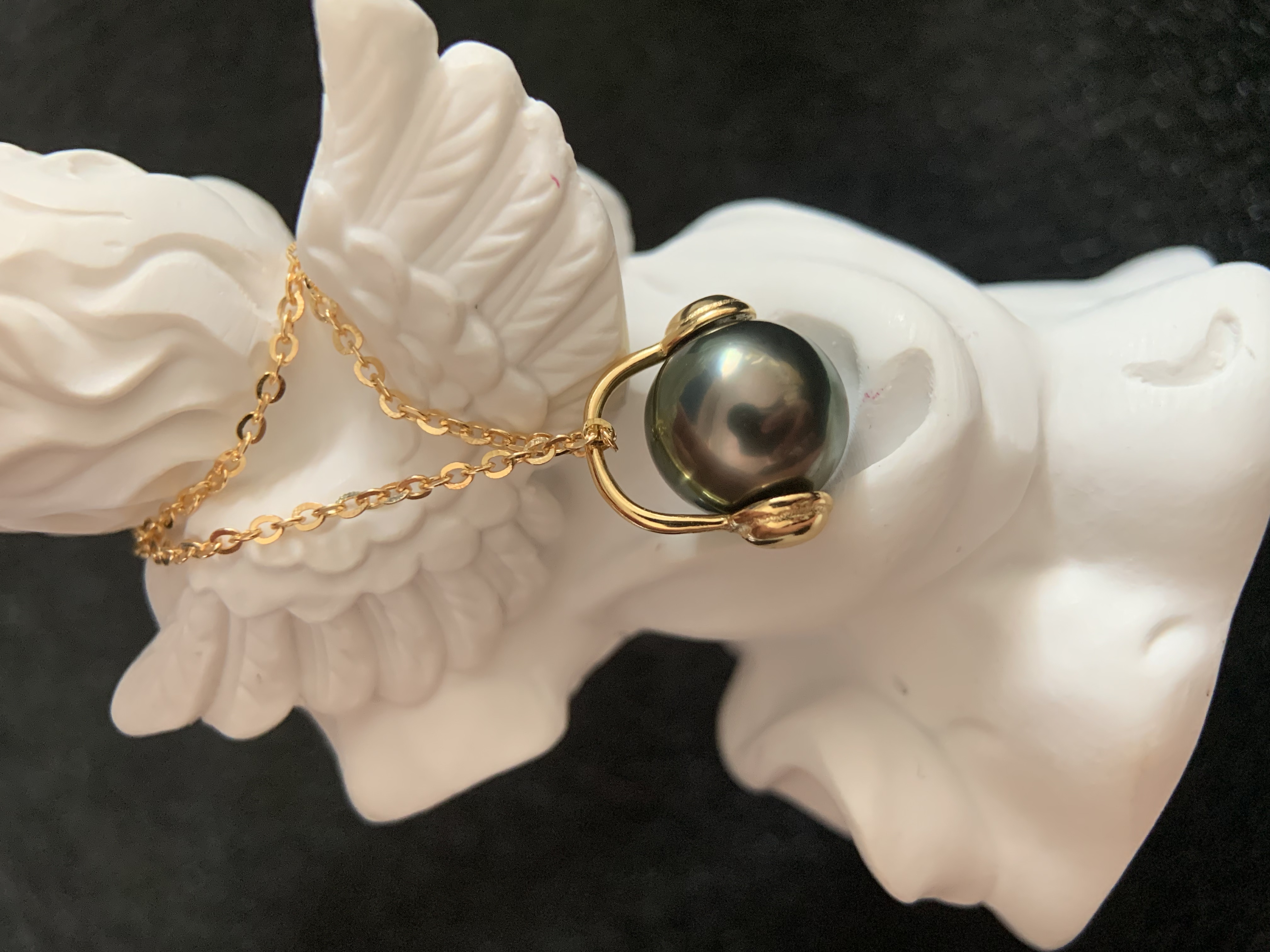TINA PEARL Simple tahiti pearl necklace+chain s925