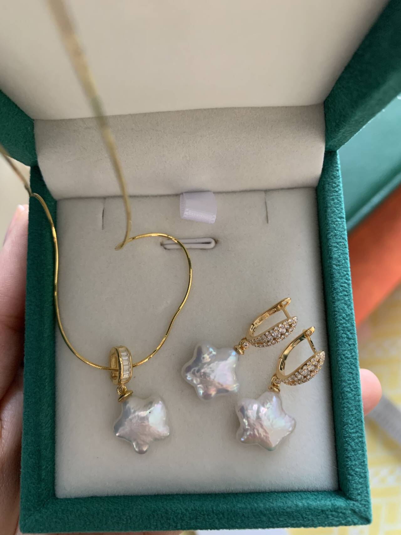 TINA PEARL : STAR NECKLACE+EARRINGS PEARL SET